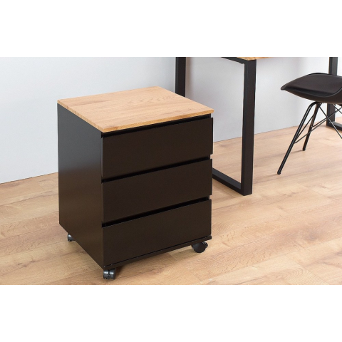 Fiókos konténer Fabian tölgy Praktikus, fiókos konténer, amely az írósztal alatt helyezhető el. A felső lap tölgy dekorból készült, amely a fiókok matt, fekete előlapjaival és oldalaival van kombinálva. 3 praktikus fiókot tartalmaz irodai kellékek és irat