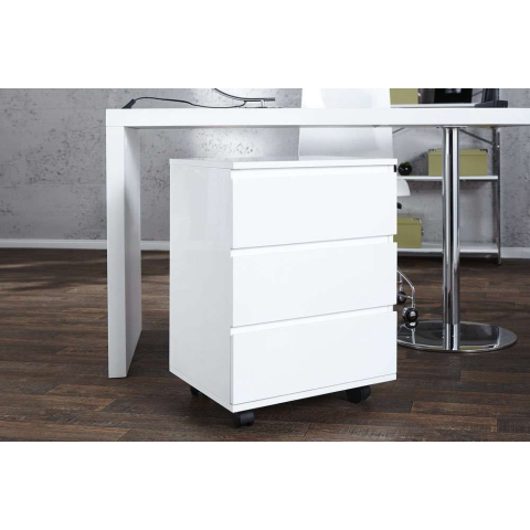 Stílusos fiókos szekrény Boss fehér Praktikus és modern fiókos szekrény a Boss íróasztalhoz, elegáns stílusban. A három nagy fiók elegendő tárolóhelyet biztosít, a kerekek pedig maximális mobilitást adnak a szekrénynek. Az elegáns, magas fényű felület meg