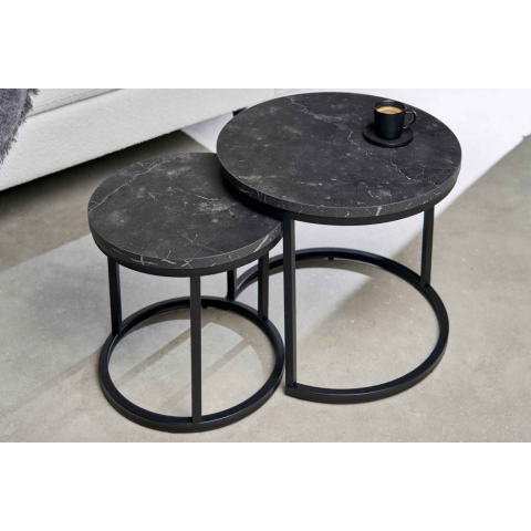 Teljes INVICTA Kerek oldalsó asztal szett Latrisha fekete marvány utánzata - 2 részes termékleírás