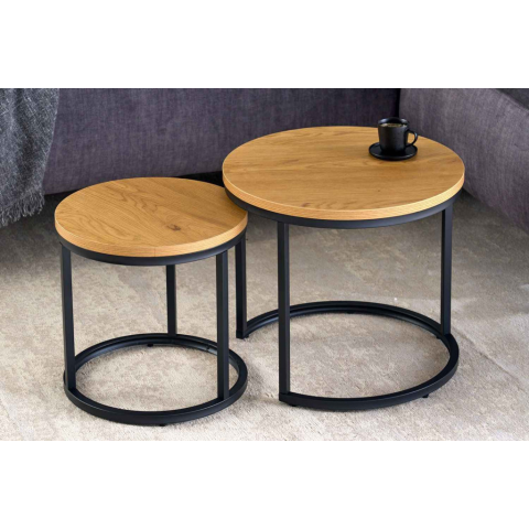 INVICTA Kerek oldalsó asztal szett Latrisha vad tölgy utánzata - 2 részes bútor termékleírás