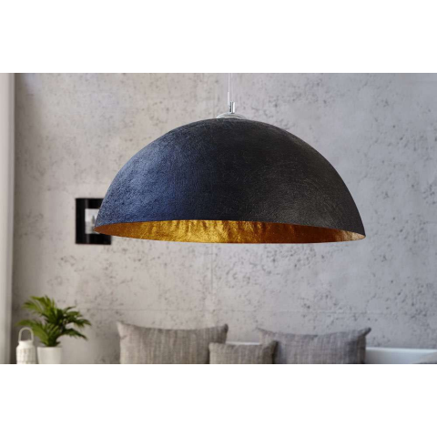 Stílusos lámpa Glimer 70 cm fekete - arany Elegáns függőlámpa Glimer fekete színben és arany retró belsővel! Egyszerű és speciális - a nemes ezüst belseje szépen tükrözi a fénysugarakat és meleg fényt teremt. Méretek (kb.):Teljes átmérő: 70 cmMagasság: 3