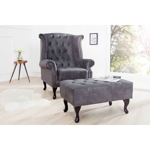 INVICTA Luxus fotel Chesterfield szürke bútor árgrafikon