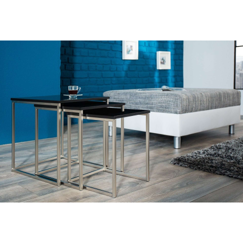 1 kép INVICTA NEW FUSION 3 darabos króm és fekete lerakóasztal szett