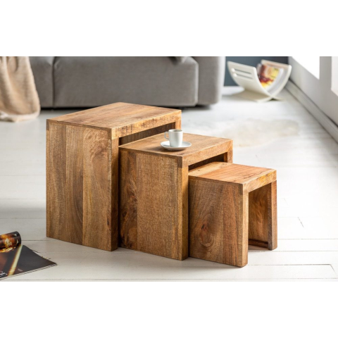 INVICTA Oldalsó asztal szett Timber mangófa natúr - 3 db bútor termékleírás