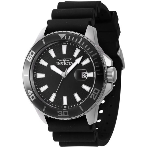 Karóra férfiaknak - analóg idő megjelenítés, óramű típusa quartz, kerek számlap, dátum, elegáns, arab indexek, ásványi számlap, 50 m (5 ATM) vízhatlanság, a tok anyaga acél, a tok színe fekete, a szíj anyaga szilikon, a szíj színe fekete, cserélhető szíjjal A kitűnő INVICTA Pro Diver 46087 férfiaknak karóra jó szolgálatot tesz a mindennapokban. Az alapját egy 45 mm átmérőjű kerek számlap alkotja. Az évek óta bevált Quartz technológia precíz mérést és