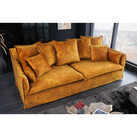 Stílusos 3 személyes ülőgarnitúra Eden 200 cm mustársárga bársony levehető huzattal Az Eden kanapé stílusos megjelenésével és kényelmével pillanatok alatt belopja mag