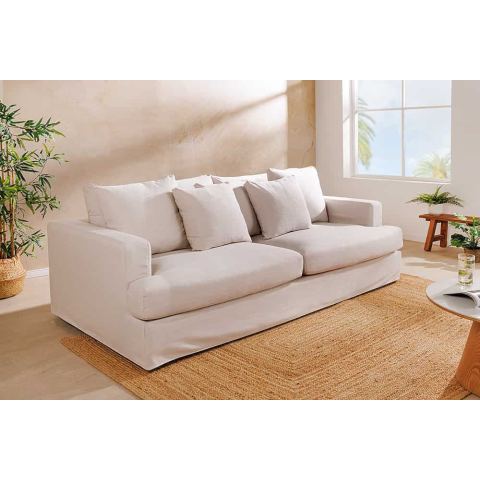 Stílusos 3 személyes ülőgarnitúra Eden II 210 cm bézs lenvászon levehető huzattal Az Eden kanapé stílusos megjelenésével és kényelmével pillanatok alatt belopja magát