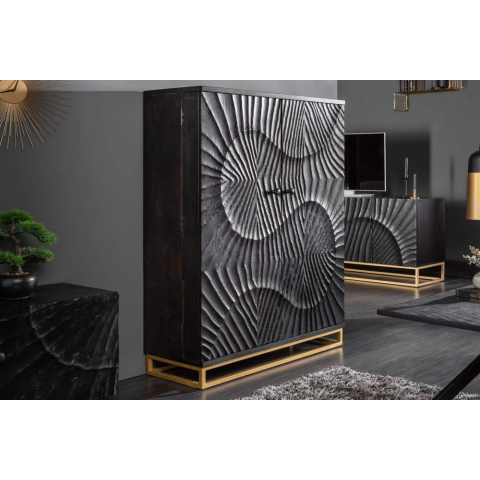 INVICTA Stílusos bárszekrény Shayla 141cm fekete mangó bútor termékleírás
