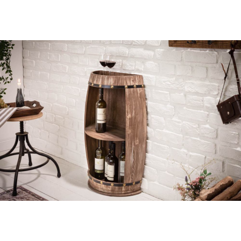 Stílusos Winebar borospalack tartó polc natúr színben - 79 cm A stílusos Winebar borospalack tartó polc hordó alakban készült. A két nyitott polc elegendő helyet kínál a borospalackok elhelyezéséhez. A polc felső része kis bárasztalként használható. Kivál