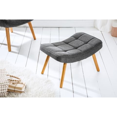 Stílusos lábtartó Sweden szürke A kényelmes Sweden lábtartó a legmagasabb ülőkomfortot az egyszerű skandináv dizájnnal ötvözi. A kiváló minőségű kárpitozott ülés elegáns díszvarrással rendelkezik, a natúr fa lábak harmonikus kontrasztot alkotnak vele. He