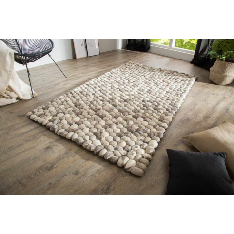 Stílusos szőnyeg Jayda 200x120 szürke filc Az exkluzív Jayda szőnyeg első pillantásra egyedülálló. A minőségi gyapjú kézzel szőtt és több bonyolult lépésben feldolgozott az egyedülálló szőnyegek kialakítása érdekében. A kő megjelenésű filcgolyók egyedi st