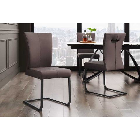 Szánkótalpas szék Bull II szürkésbarna taupe A szánkótalpas Bull szék puha valódi bőr kárpitozásával igazán elegáns dizájnt kínál. A gyönyörűen alakított keret és a háttámlán lévő fogantyú kiváló minőségű csiszolt nemes acélból készült. A szék optimális