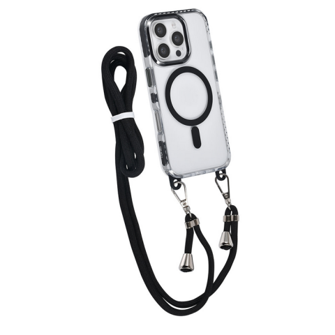 1 kép iPhone Telefontok iPhone 16 Pro - MagSafe kompatibilis átlátszó/fekete nyakbaakasztós hátlap tok