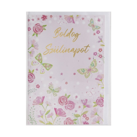 Boldog Születésnapot Kívánó Pillangós Üdvözlőlap 🌸🦋 Lepje meg szeretteit ezzel a bájos, rózsaszín alapon pillangókkal díszített üdvözlőlappal, mely tökéletes választás születésnapi köszöntéshez! Elegáns design: A rózsaszín háttér és a pillangós mi...