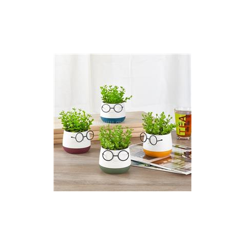 1 kép IRIS E5720 szemüveges fej dekoráció művirággal kétszínű cserépben 9x14cm (IRIS_E5720)