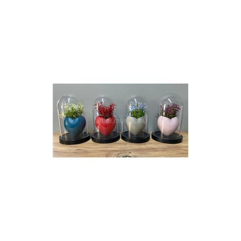 1 kép IRIS E5752 szív alakú dekoráció művirággal búrában 10x18cm (IRIS_E5752)