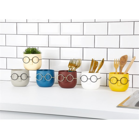 IRIS E5669 szemüveges fej alakú egyszínű cserép 10x10cm