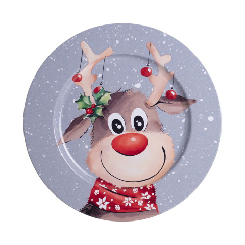 IRIS Karácsonyi Bádog kerek tálca 33x1,5cm - Rudi mintás
