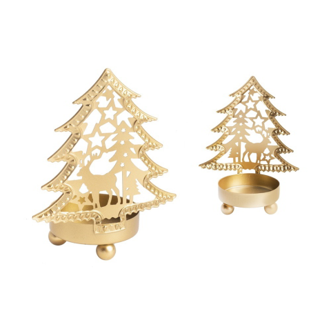 IRIS Karácsonyi Fenyő és szarvas Fém mécsestartó 8,5x11cm - Arany (448605)