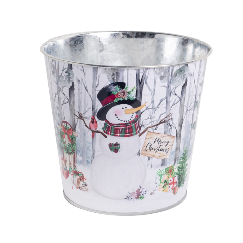 IRIS Karácsonyi kerek bádog kaspó 13,5x15 cm - Hóember minta (080873)