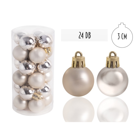 1 kép IRIS Karácsonyi Műanyag gömb dísz készlet 24 darabos 3cm - Krém / ezüst (050389)