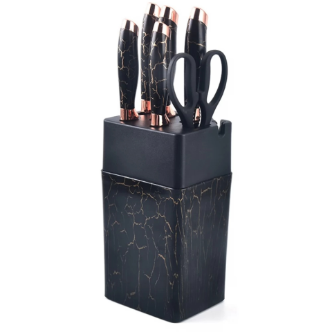 KT-015-BK fekete 7db-os konyhai kés készlet, márványos tartóval.