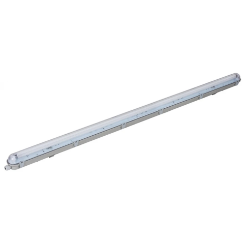 1x58 T8 ledfénycsőre előkészített por- és páramentes lámpatest, IP65 védettségű, 150cm. A ház RAL7035 világosszürke polikarbonát, a búra UV-stabilizált átlátszó polikarbonát.