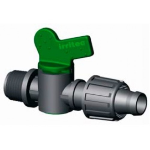 Csapos csepegtető szalag indító idom, 17mm-es csepegtető szalaghoz, 3/4 külső menetes csatlakozással a PE csőhöz. Csatlakoztatásához a gerincvezetéken 3/4 belső menetre van szükség. A meneteknél mindig használj teflonszalagot.A csap segítségével könny
