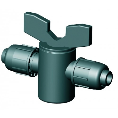 Hengeres csap, melynek mindkét oldalára 25 mm külső átmérőjű PE cső csatlakoztatható. A cső rögzítéséről kúpos, szorítóanyás csatlakozás gondoskodik. Kiválóan alkalmas csövek - akár csepegtető cső - szakaszolására, illetve olyan helyekre beépítve, aho