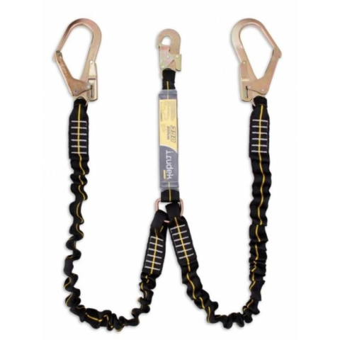 45 mm széles, 340 mm hosszú Fekete poliamid alapanyagú energiaelnyelő hevederszalag Mindkét végén hurokkal Összehajtott energiaelnyelő hevederszalag mindkét végén hurokkal Biztonsági varrással, védőréteggel Elasztikus hevederrel 180cm teljes hossz + 1 acé