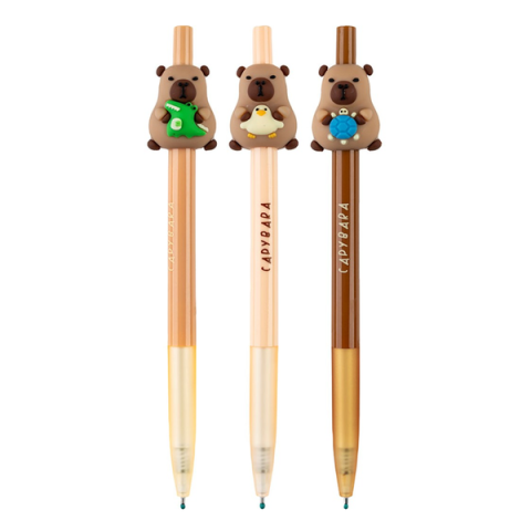 A Capybara golyóstoll nemcsak aranyos megjelenésével tűnik ki, hanem kényelmes fogásával és precíz írásélményével is. A tolltest tetején található 3D-s figura játékos és egyedi megjelenést kölcsönöz, miközben a kék tinta biztosítja a megszokott, mindennapi használhatóságot. A 0,5 mm-es hegy vékony, pontos vonalvezetést nyújt, így alkalmas jegy