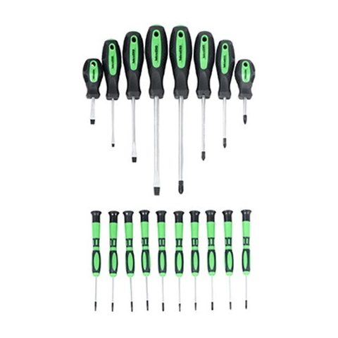 18-részes Csavarhúzó készlet HTS-18 • 8 Csavarhúzó mágneses fejjel • 10 Precíziós csavarhúzó Csavarhózó mágneses fejjel: PH (+) Csillag • 2x38mm / 1x80mm / 2x100mm / 3x150mm SL (-) Lapos • 6x38mm / 4x75mm / 6x100mm / 8x150mm Precíziós csavarhúzó: PH (+