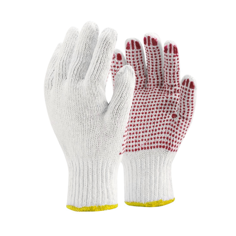 Könnyű, kényelmes, egy darabban kötött kesztyű PVC kék pontozással.