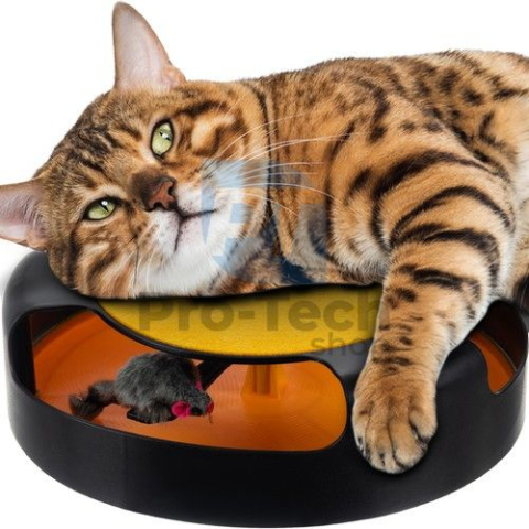 Játék macskáknak - kerék egérrelBemutatjuk a tökéletes játékot minden cica számára, korától, nemétől és méretétől függetlenül. A kör alakú játék egy egérutánzattal a közepén remek alternatíva a vadászösztönű macskák számára. Amikor a macska megüti az egeret, az elkezd forogni a kör kerülete körül, ami tovább motiválja a macskát a játékra.Ennek a játéknak fontos része a felső betét is, amely kaparófaként szolgál. Segít megvédeni a bútoroka