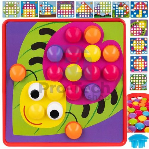 Oktató mozaik gombokkalA gombokkal ellátott oktató mozaik nagyszerű lehetőséget kínál a manuális készségek, a mozgáskoordináció és a gyerekek logikus gondolkodásának fejlesztésére. Ennek a szórakozásnak a fő része az alakzatok létrehozása színes gombokkal. A készlet mintaábrákat tartalmaz, amelyeket a gyerekek követhetnek, vagy saját formákat és mintákat készíthetnek.Az élénk és kontrasztos színek biztosan felkeltik a gyerekek figyelmét, és újra és új
