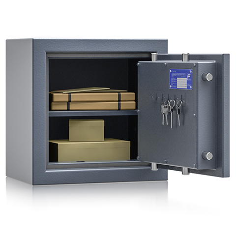 save4ever 1 otthoni páncélszekrény • MSZ EN 1143-1 szerinti EU 1 ellenállási fokozat• 25 mm vastag, többrétegű acél test• 84 mm vastag, többrétegű acél ajtó• 12 mm-re kiálló, ajtóra simuló fém kilincs• 180 fokos ajtónyitás, erős külső zsanérokkal• háro
