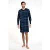 A férfi hálóing stílusos kockás mintás, kiváló minőségű, finom, 100%-os pamutból készült. A férfi hálóing 100%-os pamutból készült, ezért nagyszerű alvást biztosít. Hosszú ujjú és V kivágással ellátott. Többszínű, főleg fekete színű, kék és bézs részletekkel kiegészített. Kb. 100 cm hosszú (M-es méretben mérve).