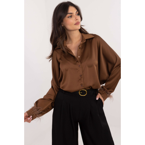 FiatalDivat Viskóz garbós, hosszú ujjú blúz IT110 modell barna színben