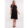 Női Hétköznapi Ruha Italy Moda MM-212025. Színe: Fekete Rozkloszowana midi hosszúságú ingruha, amelyet a mindennapi kényelem és stílus szem előtt tartásával terveztek. Könnyű viszkóz és nylon keverékéből készült, amely biztosítja a szellőzést és a finom fényt. Az egyenes szövet hangsúlyozza az univerzális jellegét, ideális munkához és lazább találkozókhoz egyaránt. A ruhának klasszikus gallérja, rövid ujjai és gomb
