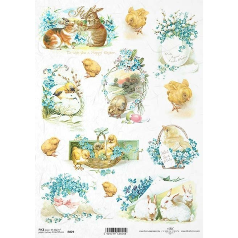 1 kép ITD Collection Rizspapír A4 - Húsvét kék virágokkal
