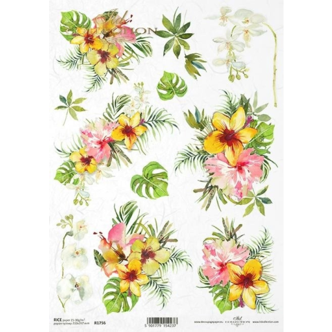 1 kép ITD Collection Rizspapír A4 - Trópusi virágok