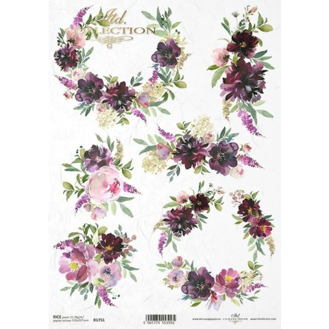 1 kép ITD Collection Rizspapír A4 - Virágcsokrok - lila
