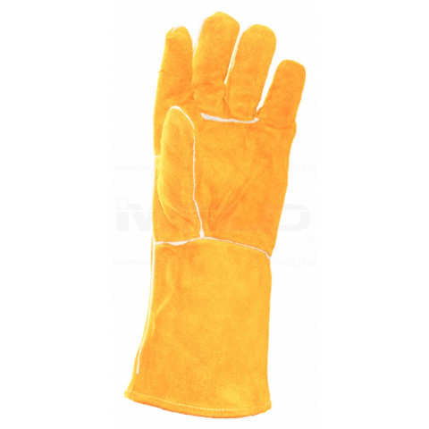 Jellemzők: - Szikra és lángálló impregnált marhahasíték, hőszigetelő pamutbélés. - 100°C kontakt hő elleni védelem (15 sec) - KEVLAR lángálló szállal varrva. - Felhasználási terület: MIG/MAG hegesztés, MMA hegesztés - Méret: 10 - Hossz: 34 cm -