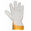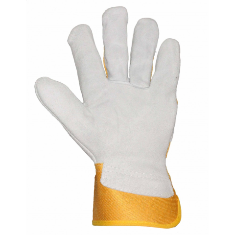 Ellenáll nagy igénybevételnek. Első osztályú, erős marhahasíték tenyér, aranyokker vászon kézhát és mandzsetta, erős varrás, tenyérnél belül puha pamut bélés. Artéria, köröm, és ökölcsont védővel ellátva. Méret: 10 Szín: Sárga Védelem: Mechanikai védelem