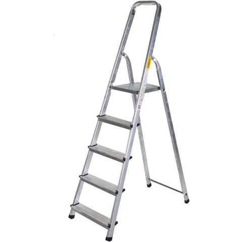 Fellépő - alumínium, összecsukható, 5 lépcsőfok, munkamagasság 1,64 m, tömege 3,6 kg, teherbírása 125 kg Alumínium létra 1×5, egyoldalas, kapaszkodóval, 5 lépcsőfokkal. Összecsukott hossz: 1,7 mTerhelhetőség: 125 kgTömege: 3,6 kgAnyaga: AlumíniumSzerkezet: Összecsukható