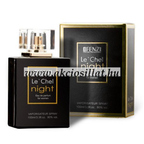 Chanel Noir parfüm utánzatok webáruháza J.Fenzi LeChel Night egy virágos - fás - pézsma parfüm nőknek. Rendkívül kifinomult és csábító és illat, keleti árnyalatokkal. Fej: grapefruit, bergamott, Szív: jázmin, rózsa, nárcisz, geránium, Alap: tonkabab, pa