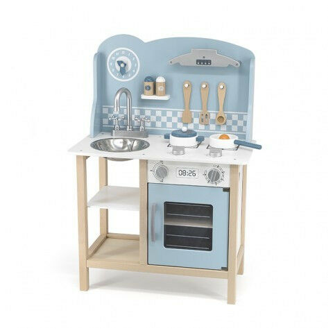 PolarB Kék Játékkonyha - A kis szakácsok álma! 🧑🍳 Ez a stabil, fából készült játékkonyha tökéletes hely a kis szakácsok számára, hogy kibontakoztassák kreativitásukat és elsajátítsák a főzés alapjait. A pasztellkék szín pedig minden gyerekszobába v...