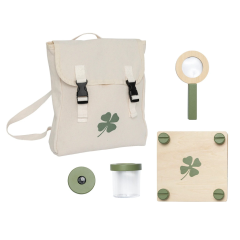 Vár rád a kaland! Ebben az okos és stílusos hátizsákban minden benne van, amire egy fiatal felfedezőnek szüksége van ahhoz, hogy elmerüljön az erdő apró és nagy rejtelmeiben. A nagyítótól a rovartartó üvegen át az iránytűig - minden eszköz gondosan össze