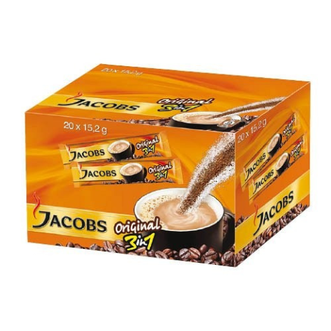 JACOBS 3in1 kávé, krémpor és cukor tökéletes kombinációja. Egyszerű és gyors elkészítési módja lehetővé teszi, hogy bárhol és bármikor élvezhesd tejes ízű kedvenc kávédat cukorral. Azonnal oldódó kávéitalpor cukorral, kávéfehérítővel (22%) és instant káv