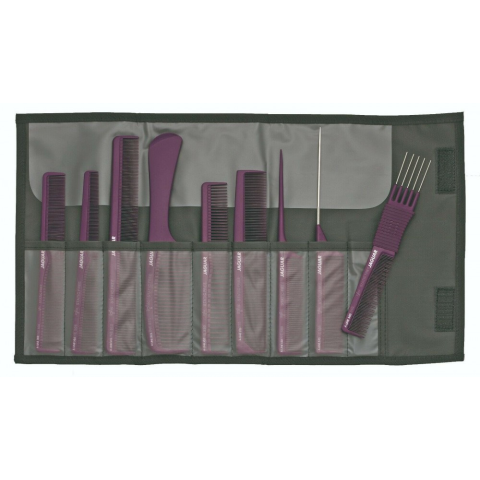 Jaguar 9 darabos fésűszett - Professzionális 9 darabos fésűszett, tartóban - Fésülés közben ionizáló hatást fejt ki - Elősegíti a haj nedvességfelvételét - Egészséges fényűvé és ápolttá varázsolja a hajat - A legömbölyített fogazat kíméletes a hajhoz és a